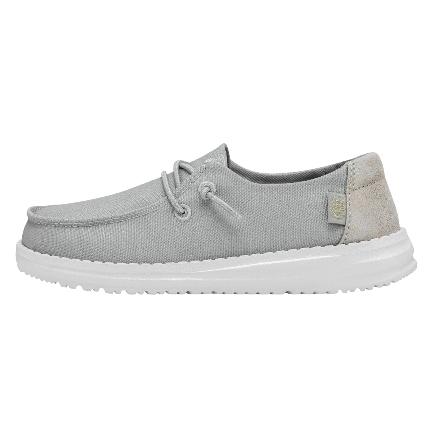 - Textured, metallic textile upper with contrasting heel detail